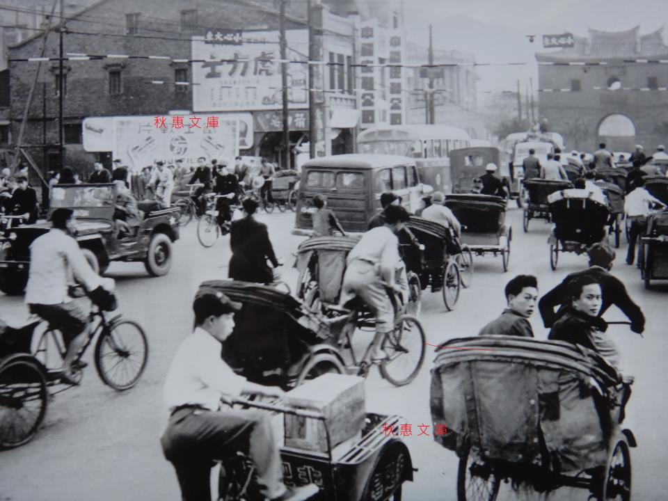 1950年代的台北北門一帶,馬路上好像沒有劃中線,有點像現在的調撥車道只是民衆自動調整而已.