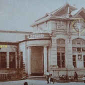 最右邊照片用黃筆畫圈圈是日本時代嘉義郵局山牆上有一個日本郵局的 logo