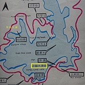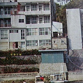 早期日月潭的觀景飯店,可是從潭中住陸地方向看的話只能看到鐵皮屋及破壞景觀的飯店背面.