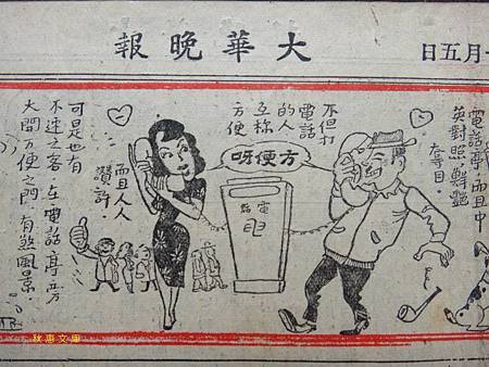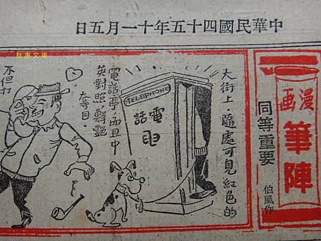 早期的紅色公共電話亭可是在公厠不普及的時代也有人對它尿尿,民國45年的漫画報導了當時的社會情景