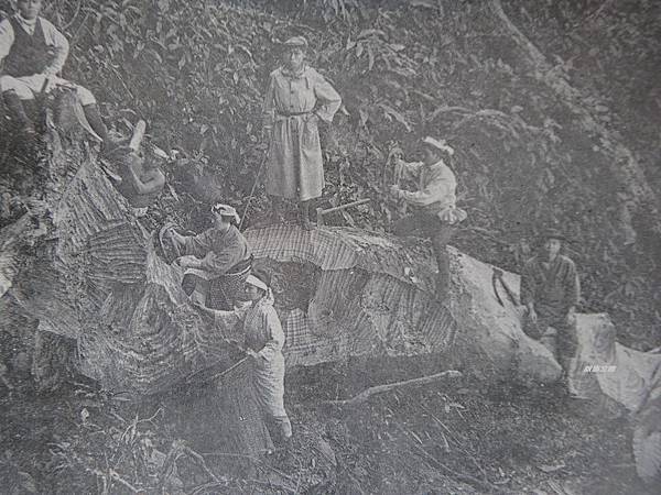 日本時代,樟腦樹刨木.將樟樹刨成木片用腦灶加熱待腦氣昇華冷却之後的結晶就是樟腦,而製造樟腦的地方就稱腦寮.