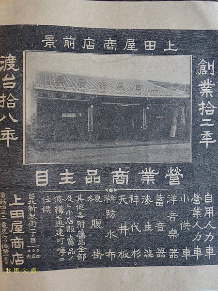日本時代台北新起街(現西門紅樓附近)日本人商家廣告