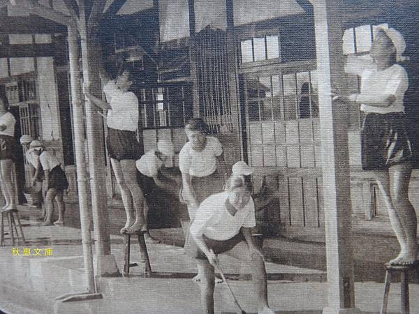 正在打掃校舍的嘉義女中學生(1942年畢業班學生)