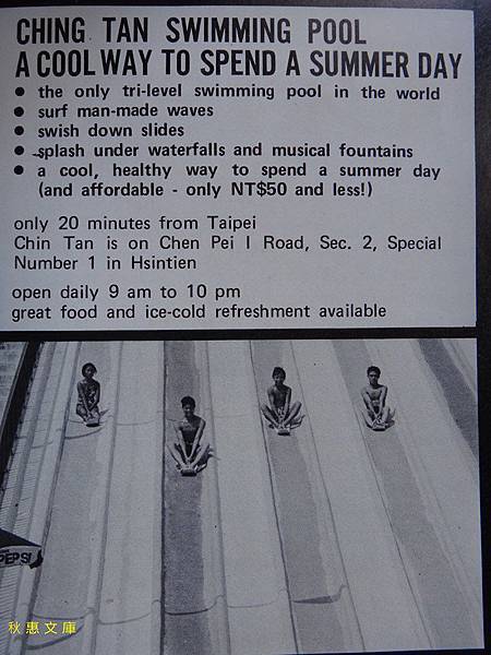 1970年代台北水上樂園青潭游泳池在漢聲雜誌英文版的廣告11970年代台北水上樂園青潭游泳池在漢聲雜誌英文版的廣告2