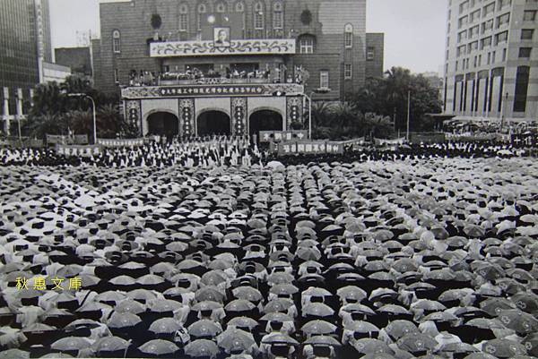 27年前的今天,戴著小雨傘帽在台北市中山堂前集會的學生