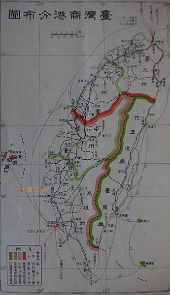 昭和14年(1939)台灣商港及其腹地分佈圖