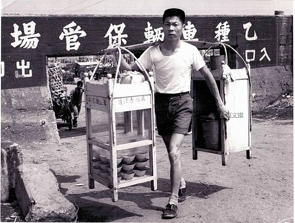 台灣台北市挑擔賣杏仁露的小販.1971年2月11日黑白相片
